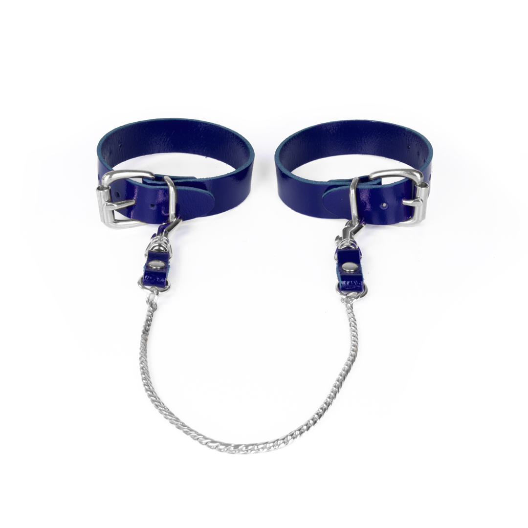 Greifen Sie zu luxuriösen Accessoires, die Ihnen helfen, die Freude am Spiel im Schlafzimmer zu entdecken. Dieses Set enthält bequeme Leder-Fußfesseln und eine Verbindungskette. Was sie auszeichnet, ist die Farbgebung – Naturleder in einem Indigoton und silberne Metallakzente ergeben eine coole und sehr ästhetische Kombination, die in jeder Situation schön zur Geltung kommt.