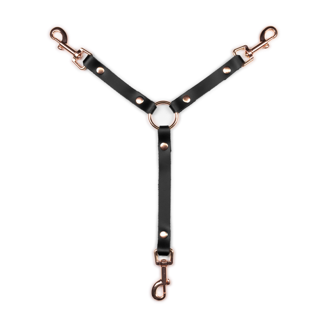 Looking for a way to connect your bondage accessories? This stylish triple connector is perfect for use with your favorite cuffs and more. Its elegant and timeless design will impress you and allow for easy matching with other gadgets.