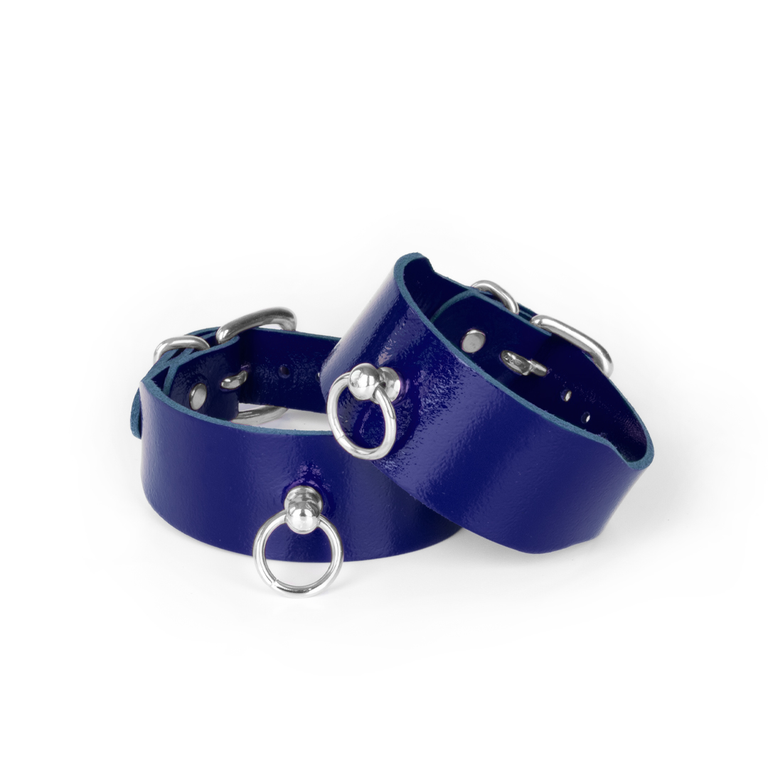 No bondage gadget collection is complete without feetcuffs. This model is designed for individuals who value uncompromising style and comfort. Handcrafted from natural leather in an indigo shade with silver details, they create a WOW effect during play.