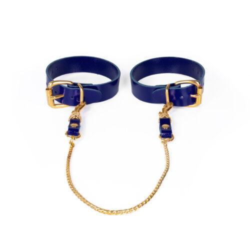 Leather feetcuffs with chain indigo/gold