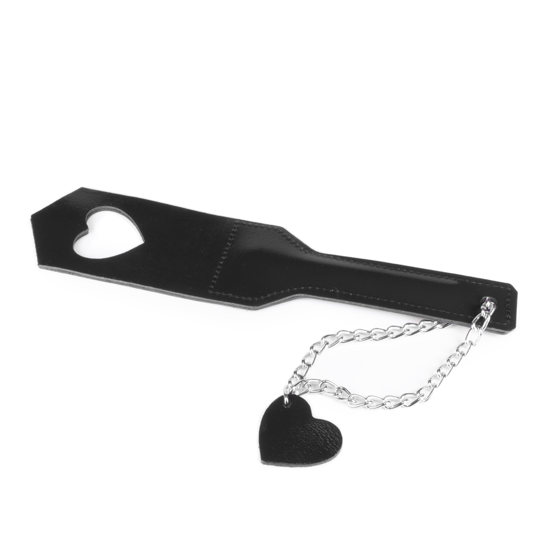 Leather heart paddle black/silver