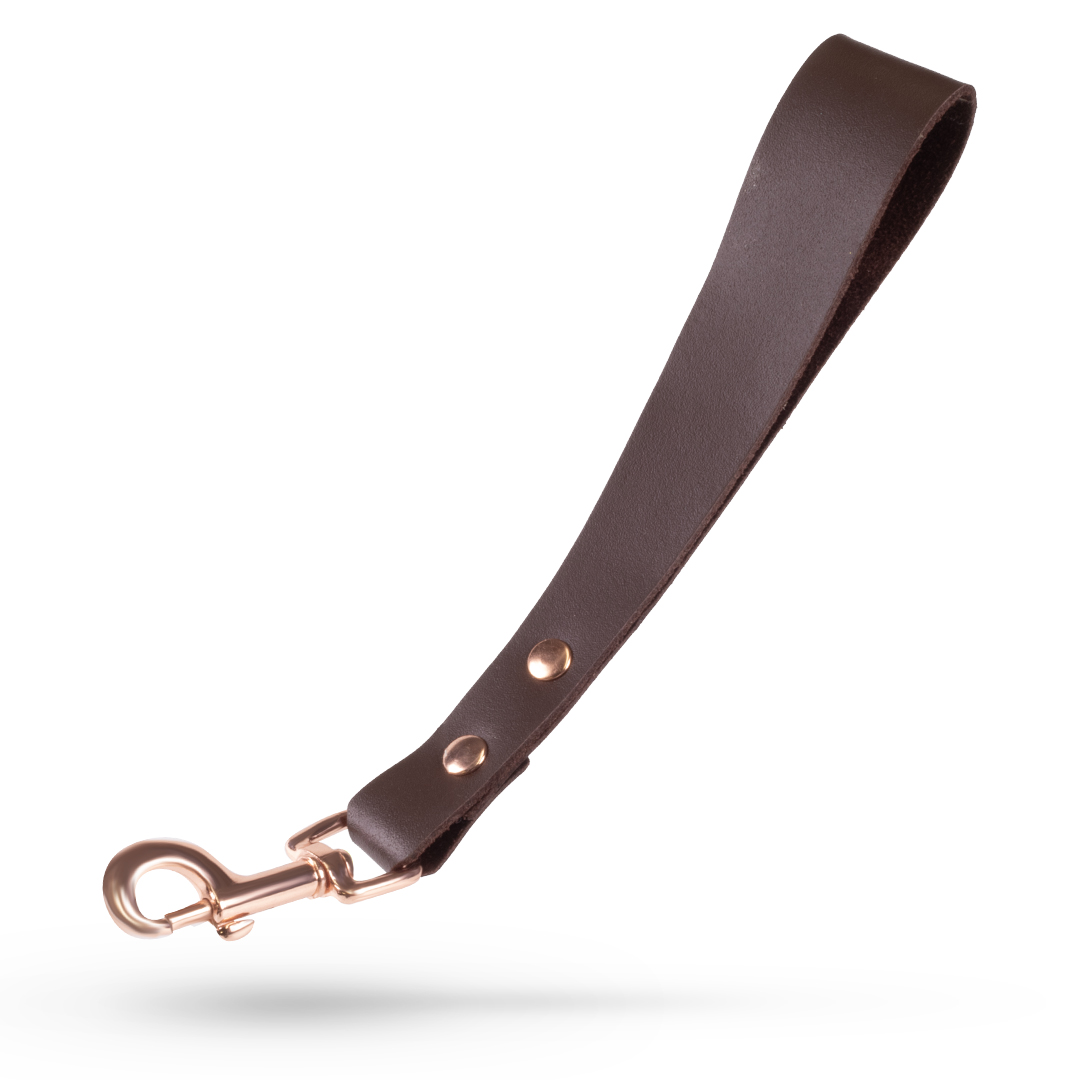 This short leather leash is an elegant accessory that can quickly heat up your bedroom. It consists solely of a handle and a carabiner, allowing you to be led or take control while remaining exceptionally close.
